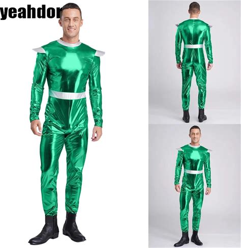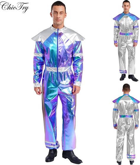 Mannen Metallic Halloween Alien Astronauten Robot Cosplay Lange Jumpsuit Outer Space Cutie Astronaut